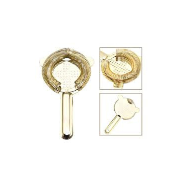 “Add a touch of luxury to your mixology with our Four Ear Strainer Gold Plated! This heavy-duty strainer features four ear handles for easy lifting and straining, with a gold plated finish that adds a touch of sophistication to your bar setup.”